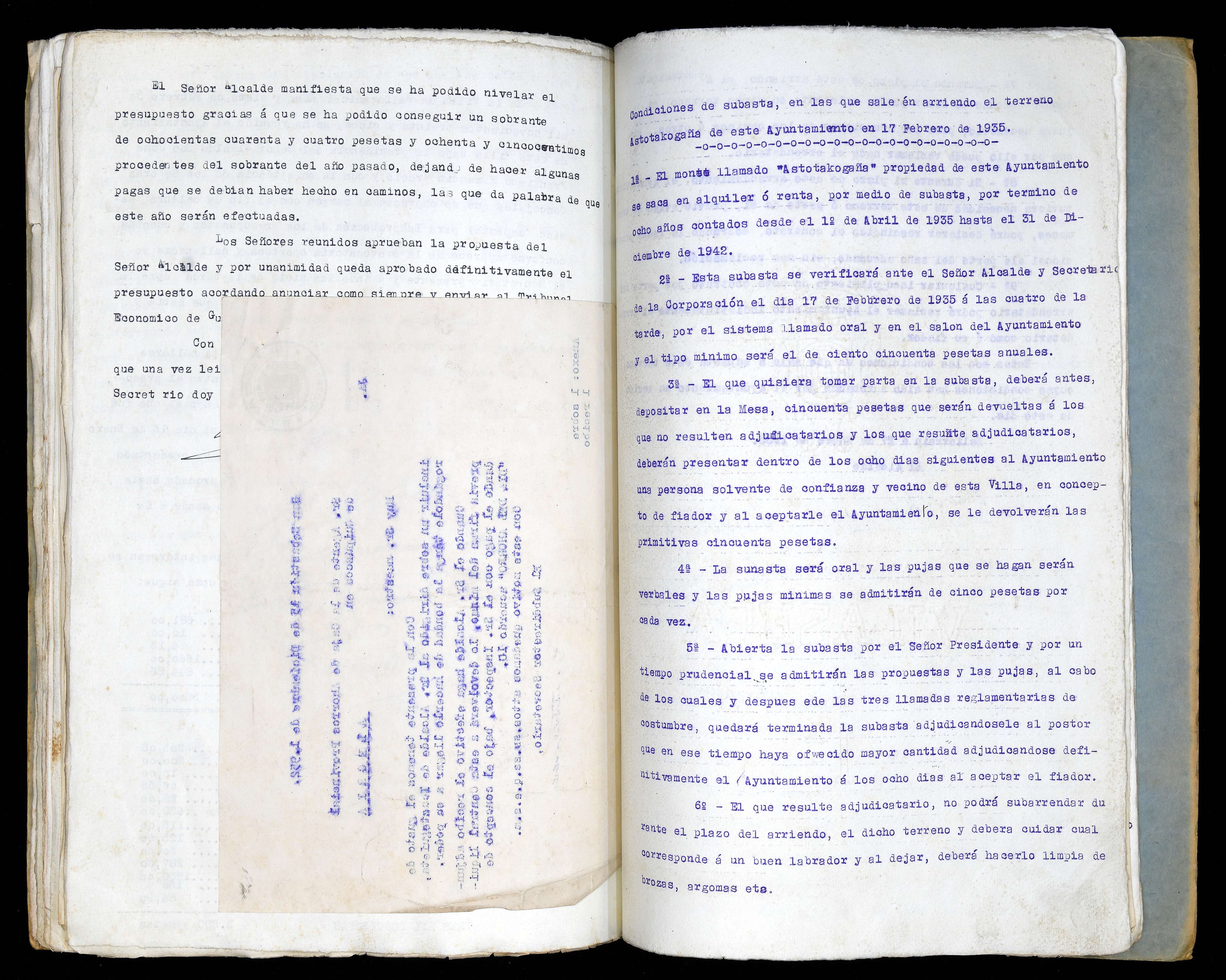 1- Astotakogaina lursailaren enkantea, Juan Ignacio Jaureguik irabazia eta José Antonio Jauregi bere fidatzaile izendatzen da.